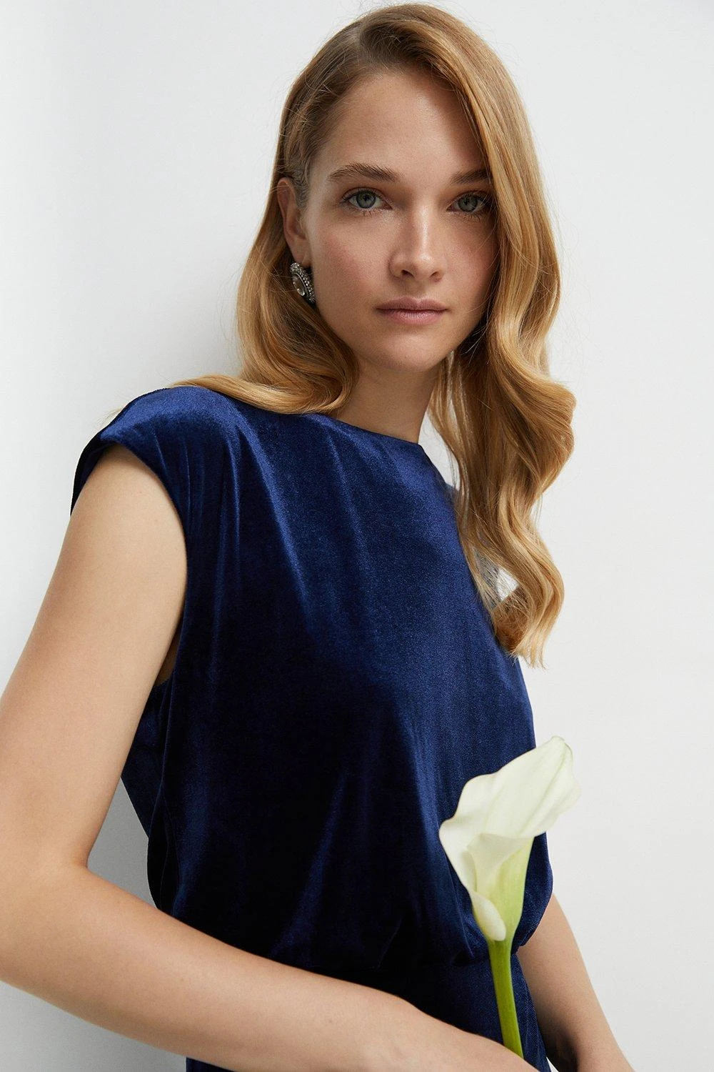 Inspired by lavish affairs, this velvet dress will take pride of place in traditional settings with character. Featuring a round neck, this blouson style is completed by a dramatic train that extends down the back to a sweeping length.