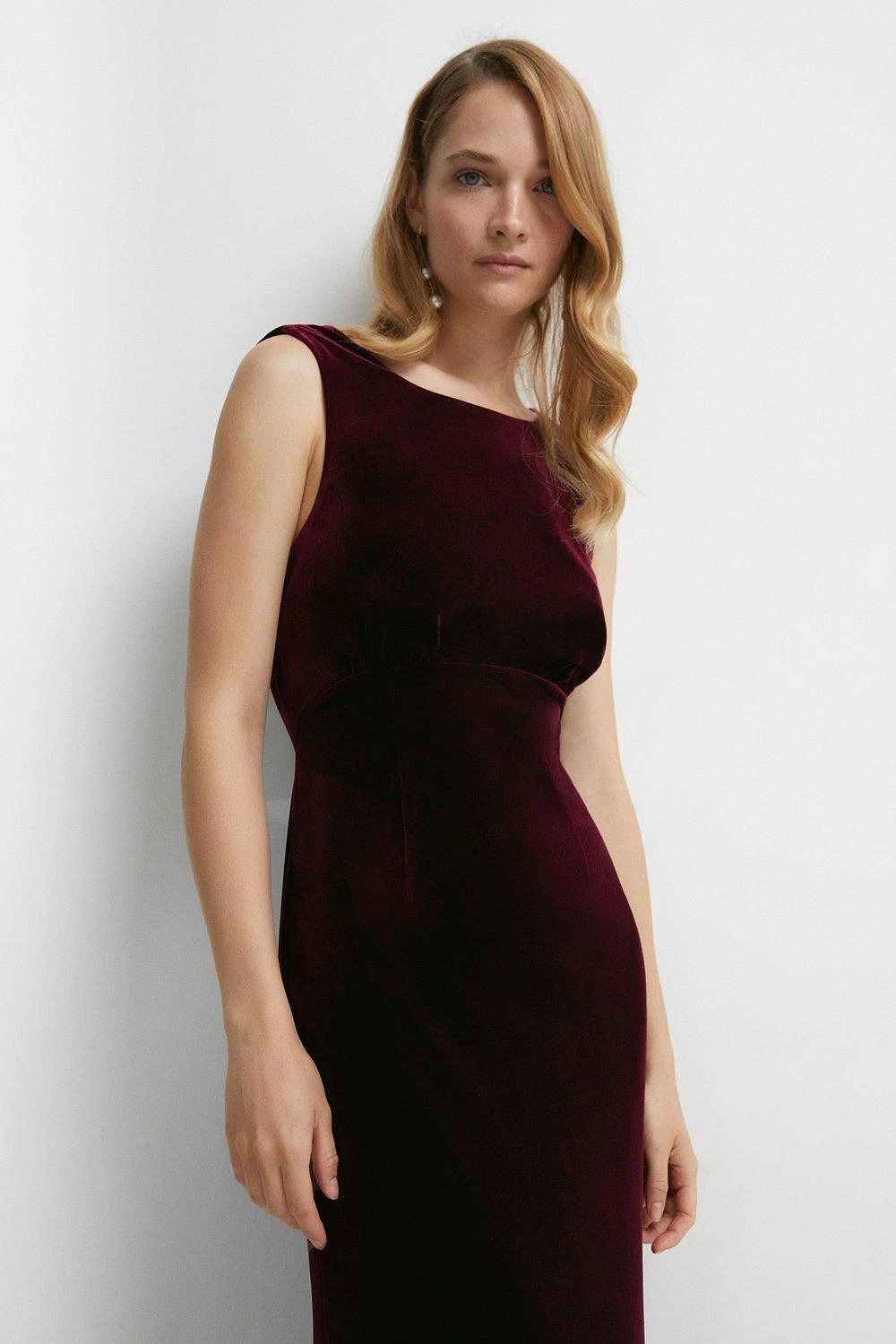 Sculpted to a curve-hugging maxi silhouette, this dress is crafted from luxurious velvet for a truly showstopping bridesmaid style. A back cowl drape surprises the spectator for an unexpected twist on this paired-back design.