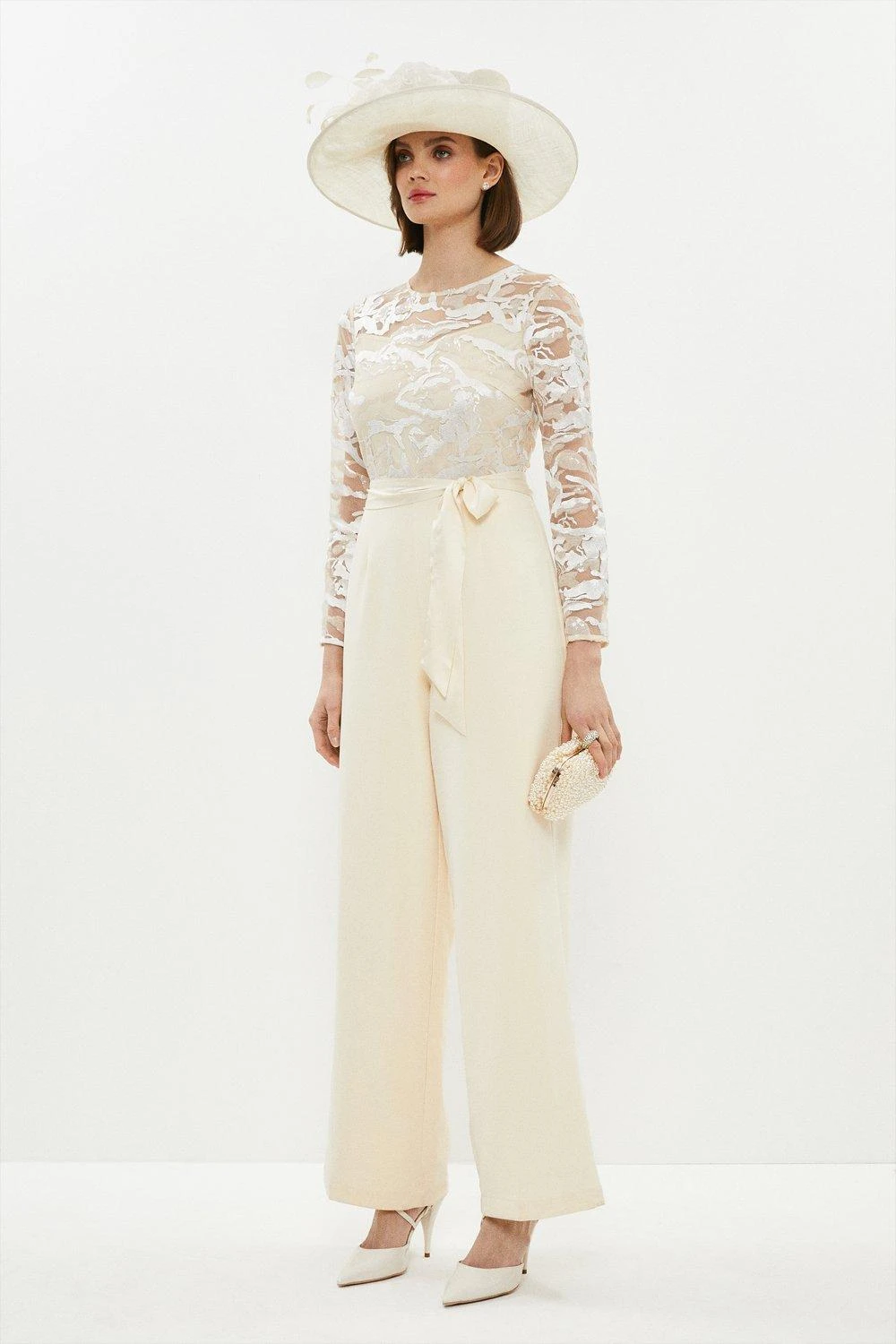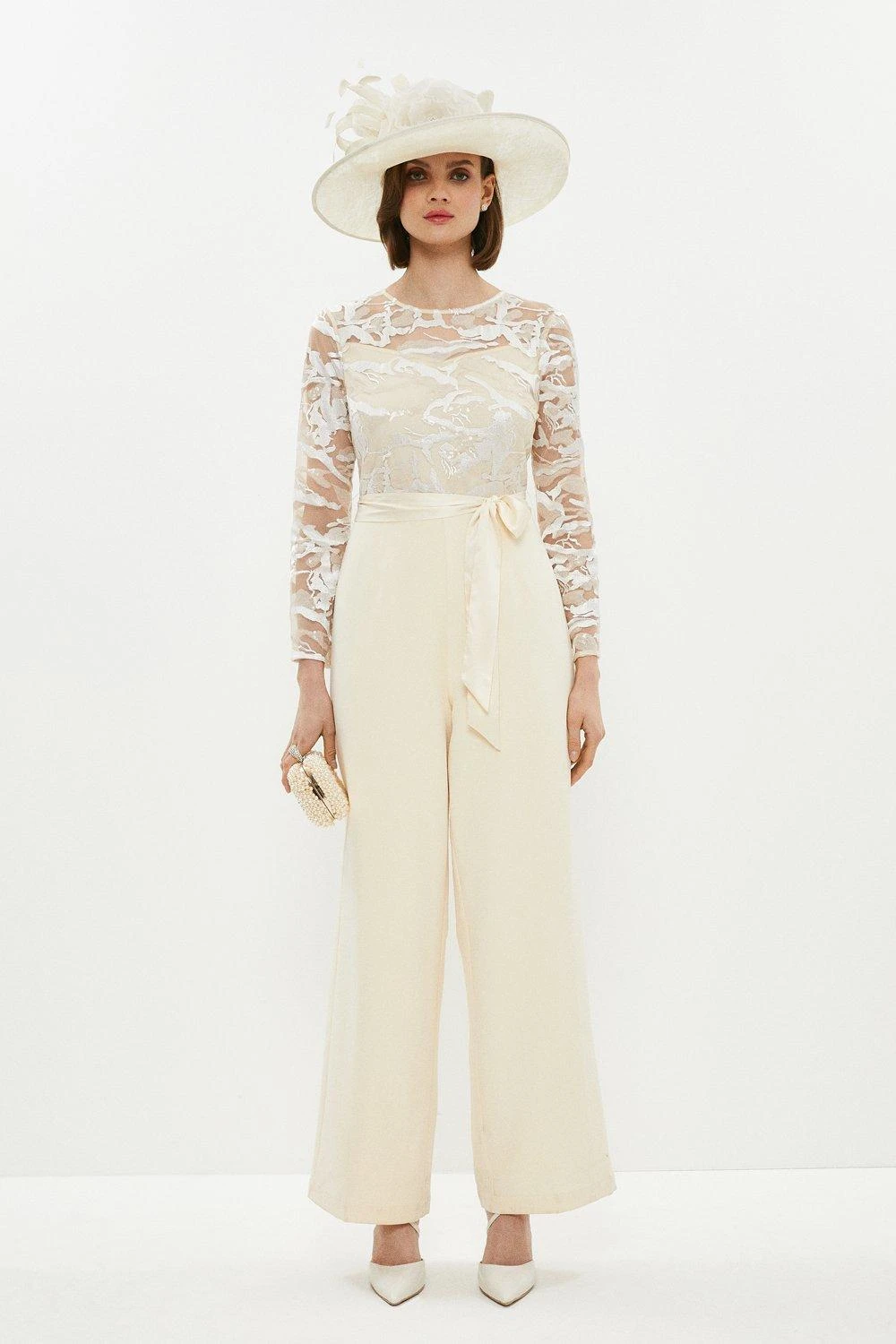 Part of our new Mother of the Bride collection, this jumpsuit gives every mum a moment in the spotlight. Made for the very modern mother of the bride or groom, this lace-laden all-in-one comes with long sheer sleeves, a nipped-in bodice and flattering wide-leg trousers. Not just for weddings, it’s also perfect for other formal occasions alike.