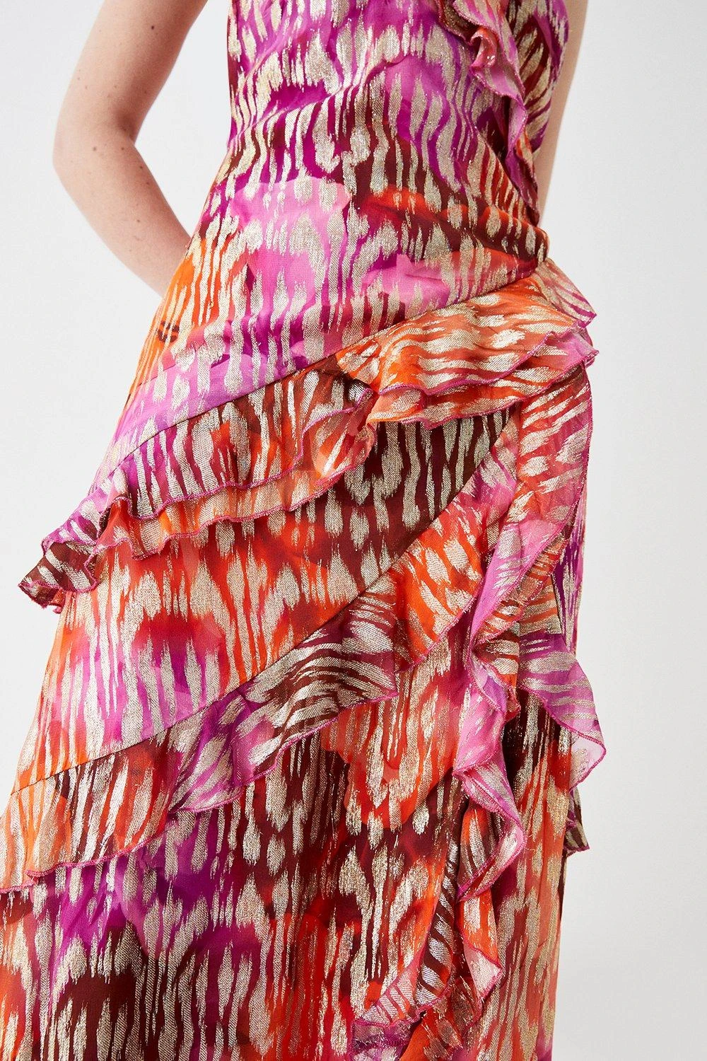 Main: 94% Viscose, 6% Metallised Fibre. Lining: 100% Polyester. Hand Wash Only. Length 150cm.