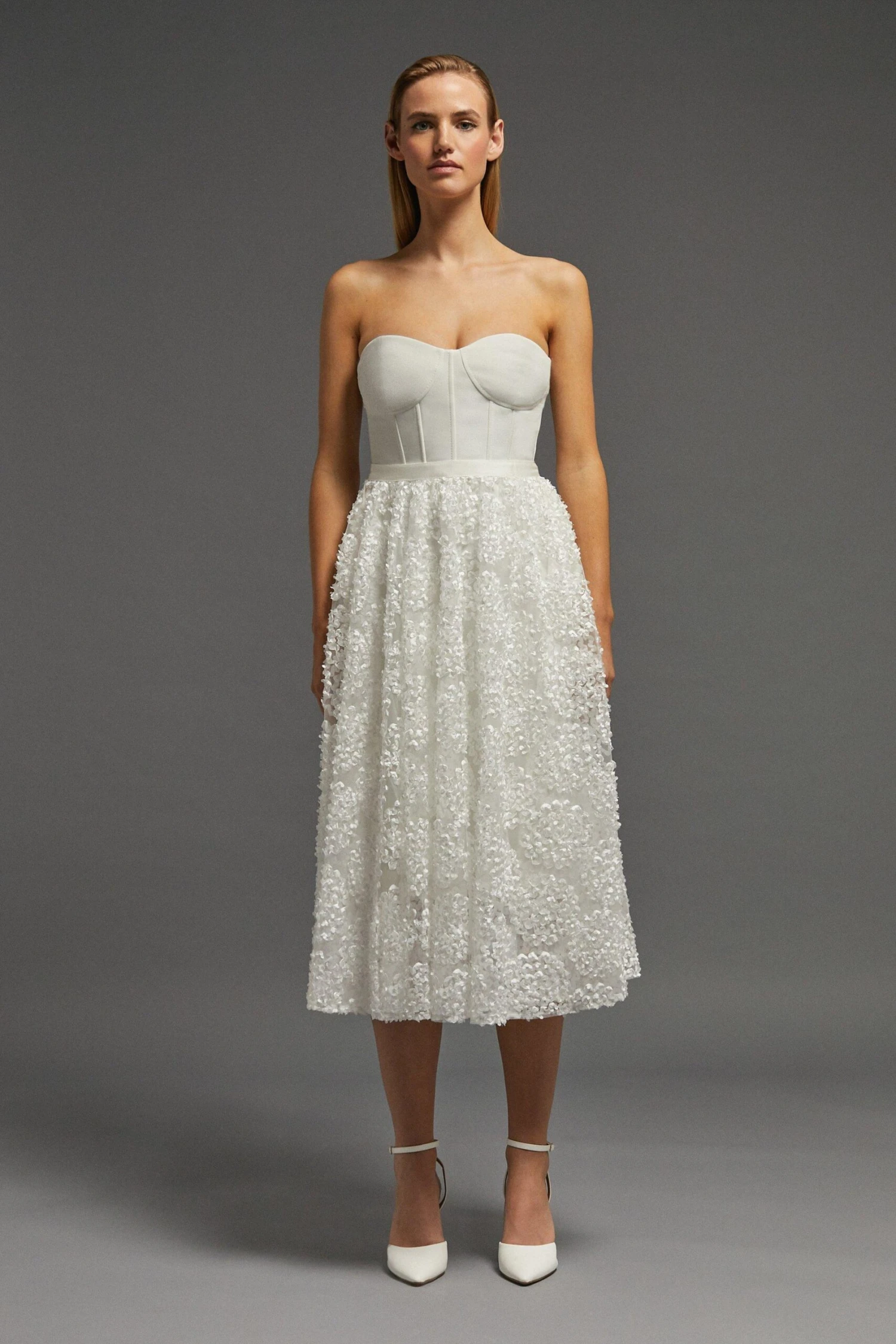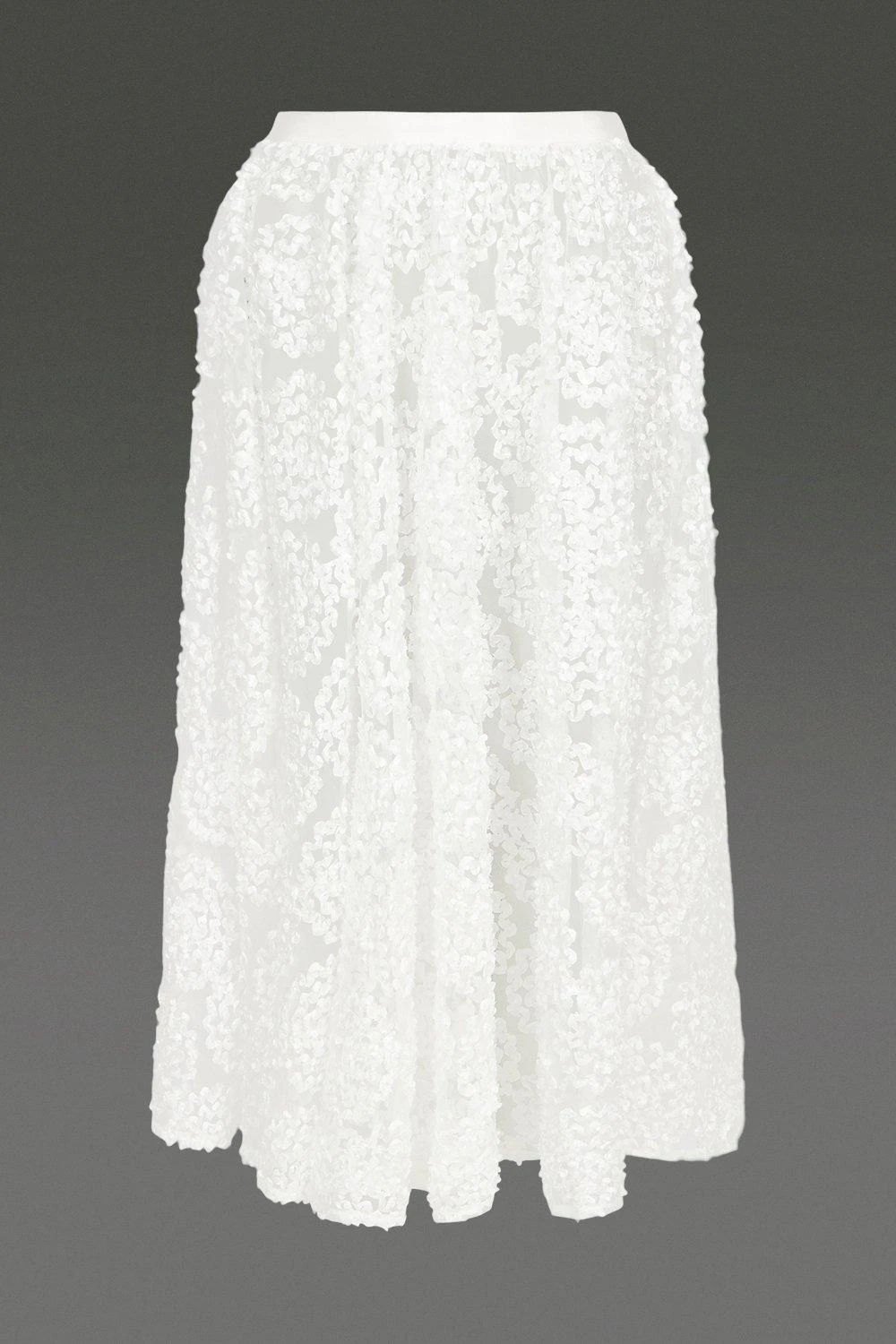 Create a bespoke bridal look with this overlay skirt. As part of our bridal separates collection, the piece can be worn individually or together with the rest of the collection. Perfect to be layered over our base wedding dresses, the skirt is designed with a sheer embroidered fabric, high waist and comes in a maxi length.