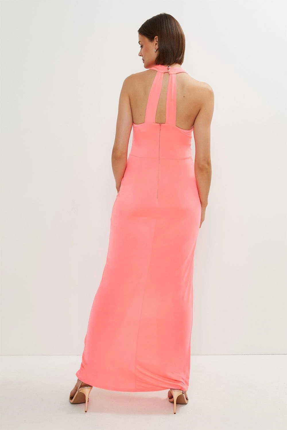 Prepare to captivate the crowd in this dramatic maxi dress. Detailed with a textured front twist and leg-revealing hem split, this beautiful halter-neck number makes a seductive choice for your next special soiree.