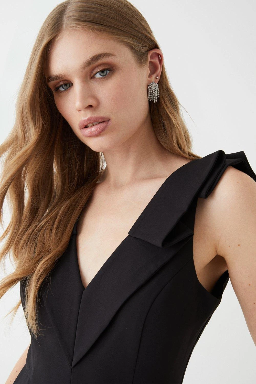 Main: 89% Polyester, 11% Elastane. Lining: 100% Polyester. Dry Clean Only. Inside Leg Length 82cm. Length 155cm.