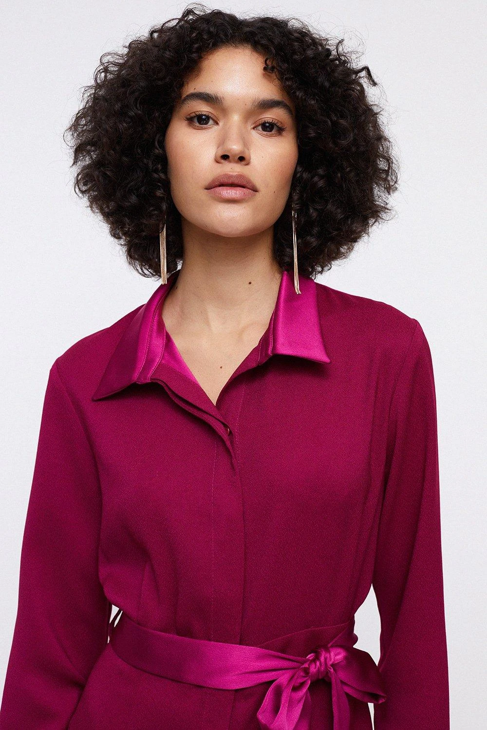 Main & Contrast: 100% polyester. Lining: 100% polyester. Dry clean only. Length: 152cm
