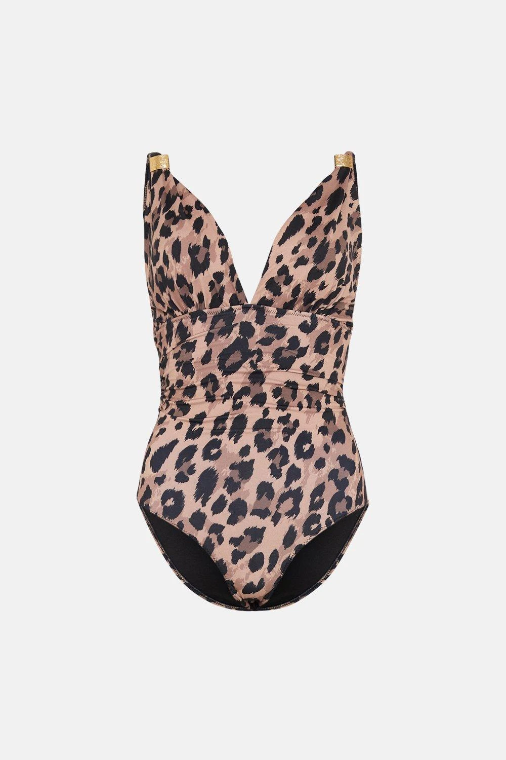 Coast Printed Gold Trim Detail Plunge Swimsuit