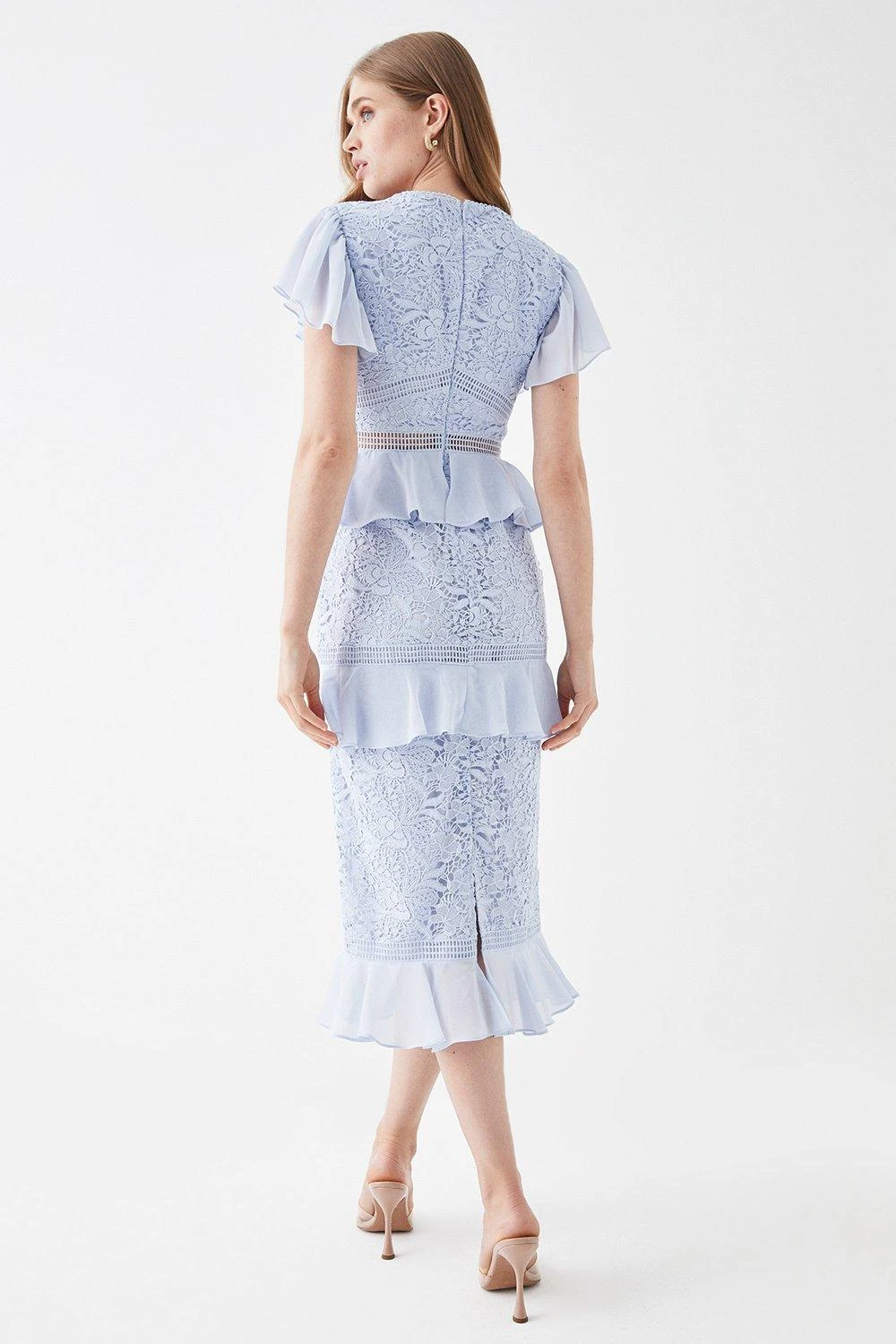 Coast Tiered Lace Pencil Dress With Pleat Tiers