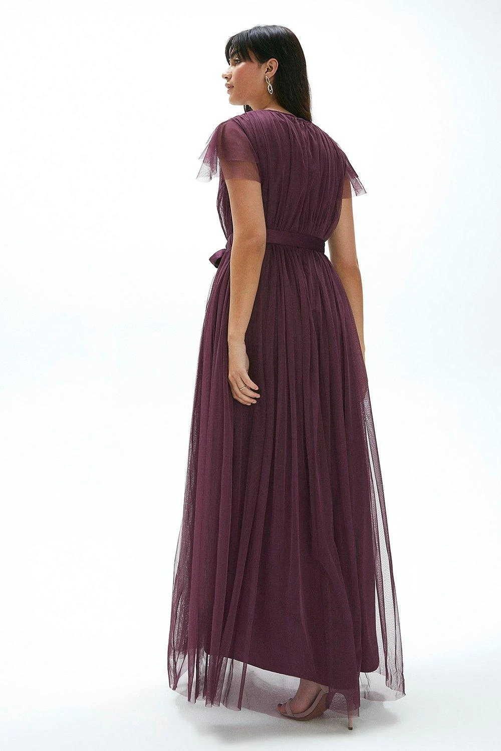RSVP yes to every invitation with our striking tulle maxi dress in your arsenal. It shows off frilled sleeves, a waist-cinching belt and a flowing skirt that perfectly frames your favourite heels.
