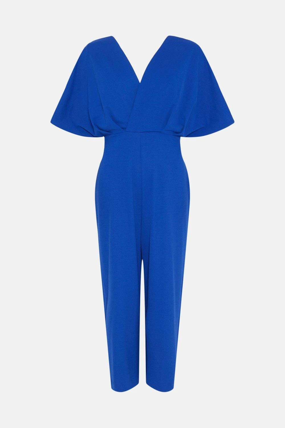 Floaty, cape-style sleeves lend this sleek crepe jumpsuit a formal feel. Cut to instantly flatter your form, it features a wrap-over V-neckline, cropped trousers and a cinched-in waistline to impeccably accentuate curves.